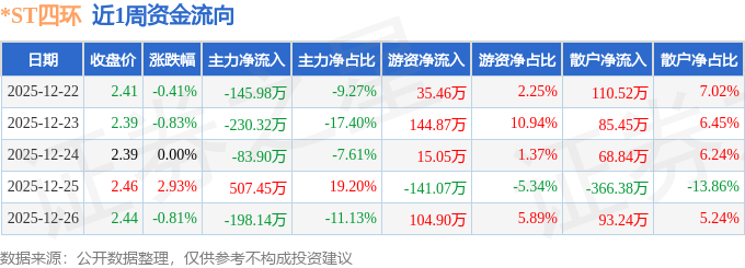 你的位置:中国十大股票配资平台_线上配资的上市公司_提供网上配资 > 提供网上配资 > 配资股票抵押 本周盘点(12.22-12.26):*ST四环周涨0.83%,主力资金合计净流出150.89万元